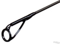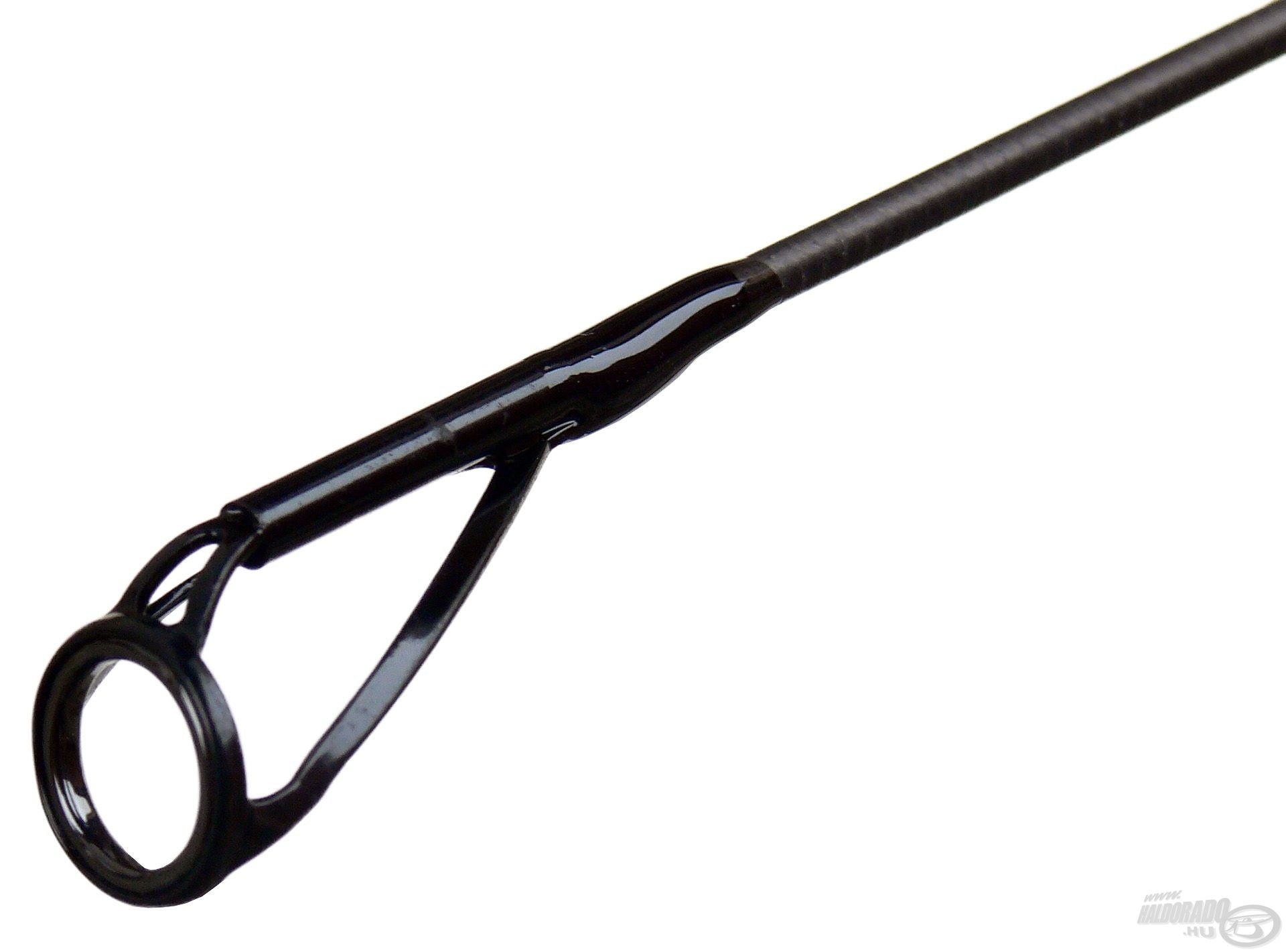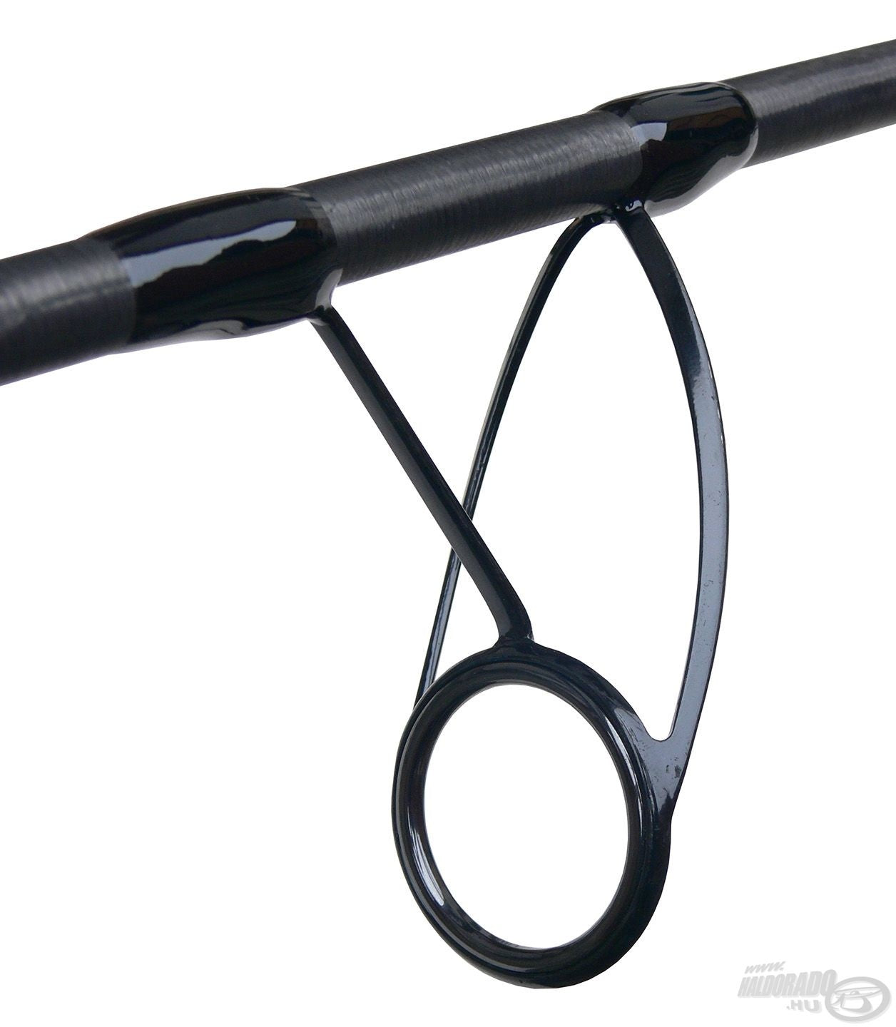 Az orsótartó feletti díszkötéstől már csak a csupasz bottest látható, mely átforgatva egy nagyon érdekes mintázatot rajzol ki. Mi ezt magunk között csak "gyűrt karbonnak" nevezzük. A botok alapanyaga egyébként 40 tonnás High Modulus Toray Carbon, és mindhárom boton 6 db SeaGuide Titánium, dupla talpas távdobást segítő gyűrű található.
