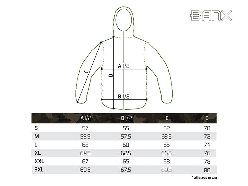 A dizájnt a fekete szín és a stílusos, szabadalmaztatott BANX álcázás kombinációja jellemzi. Ennek köszönhetően a kabát nemcsak horgászathoz, hanem mindennapi viseletként is tökéletes választás.