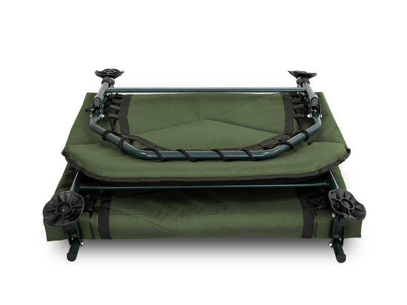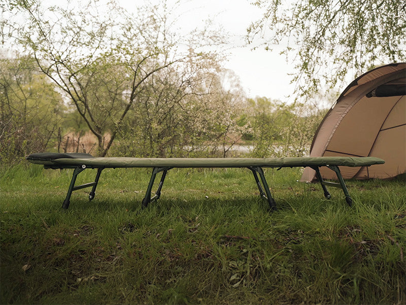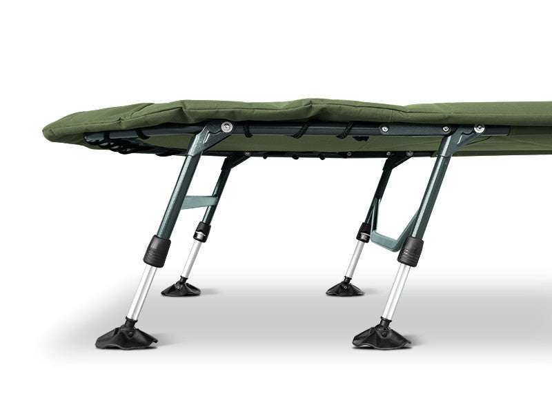 Az ágy alapja egy tartós és könnyű zöld szerkezet és 8 láb garantálja az abszolút stabilitást. A lábak egyenként állíthatók a különböző terepviszonyoknak megfelelően és robusztus sártalpakkal rendelkeznek. A fejrész alatti lábpár egy biztonsági mechanizmussal rendelkezik, amely könnyedén kihajtja az ágyat, és megakadályozza annak összecsukódását vagy elmozdulását.