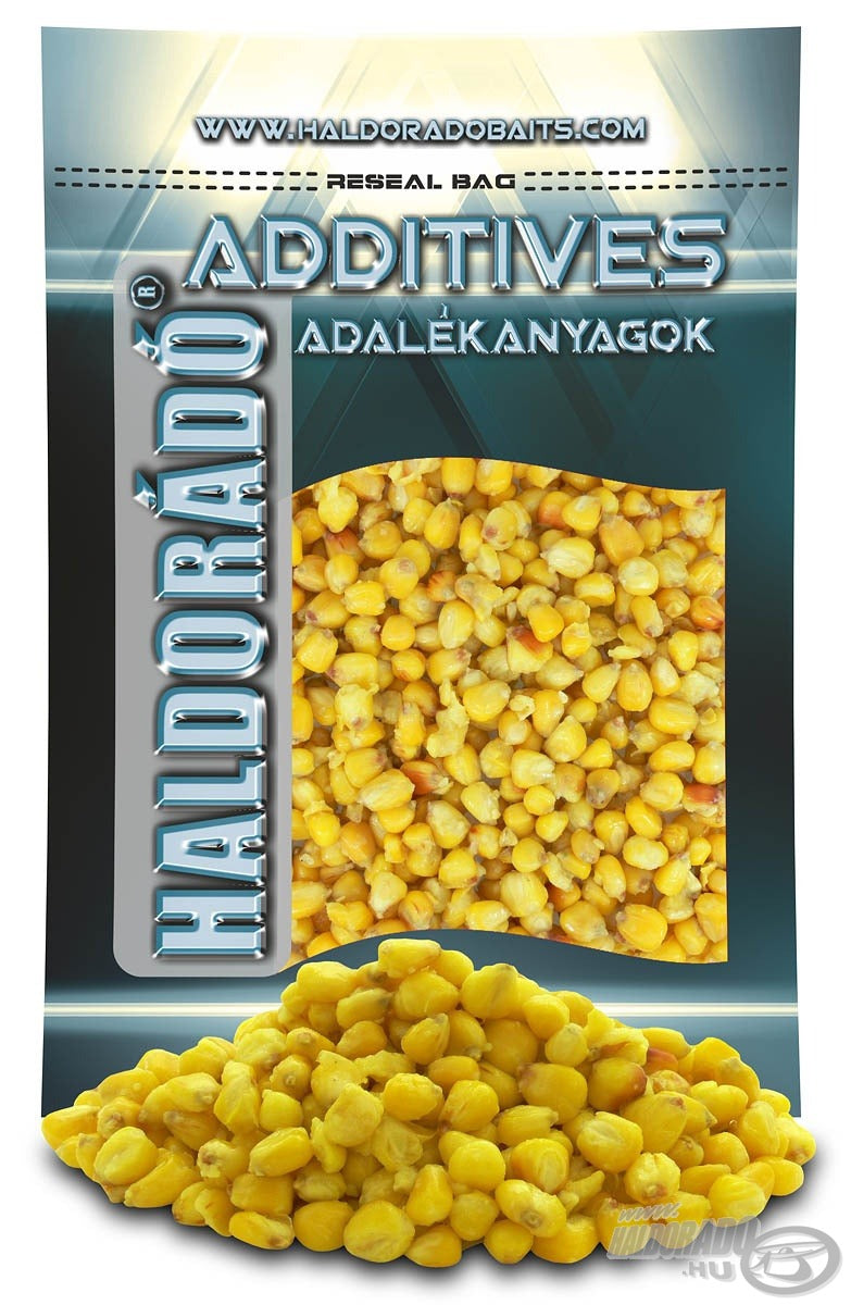A főtt kukorica natúr változatban is az egyik legnépszerűbb csalogatóanyag, ám tovább ízesítve jelentősen megnövelhetjük annak hatását. Az „amur” ízesítésű magvak a sok hazai vízben is megtalálható, nagyra növő növényevő halnak, az amurnak próbál meg a hínár-sás + pisztácia aromájával kedveskedni. Ez messziről a horgászhely közelébe csalogatja a kíváncsi torpedókat. Önmagában, egyre nagyobb mennyiségen szórva igazán hatásos, de ez több napot igények. Ha már a rövid idejű horgászatok során is szeretnénk vendégül látni a halakat, akkor a bevált amuros etetőanyagunkba érdemes keverni, adagolása ilyenkor felkúszhat akár 30-40 %-ig is