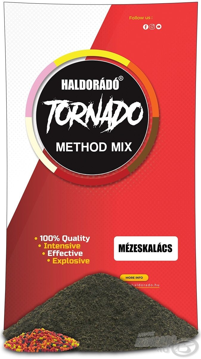 A TORNADO Method MIX egy új, egyedi gyártástechnológiával készült etetőanyag család, amely kifejezetten a pontyos method horgászatokhoz lett optimalizálva. Kiélezett helyzetekben, versenykörülmények között is megállja a helyét! A csalogatóanyagok ízvilága illeszkedik a már megszokott TORNADO termékekhez. A csomagba finomszemcsés, jól felhősítő method keverékekkerültek, de mindegyik teljesen más! Nem csak az aromák és színek változnak. Mindegyik kaja teljesen más összetevőket és alapanyagokat tartalmaz, a legjobb hatás elérése érdekében!