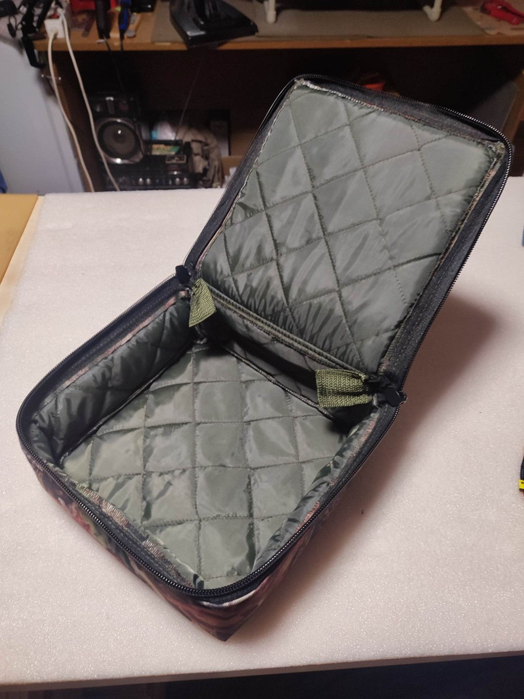 Szivaccsal ellátott hordtáska a távirányító és a halradar biztonságos szállítására.
